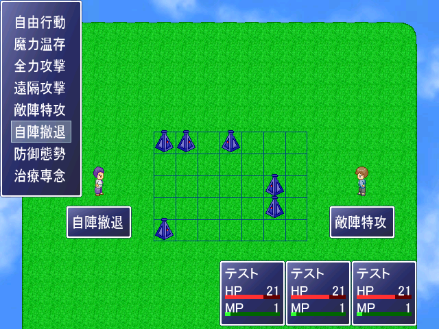 スクリーンショットにある作戦の内、「敵陣特攻」と「自陣撤退」のみ実装してあります。