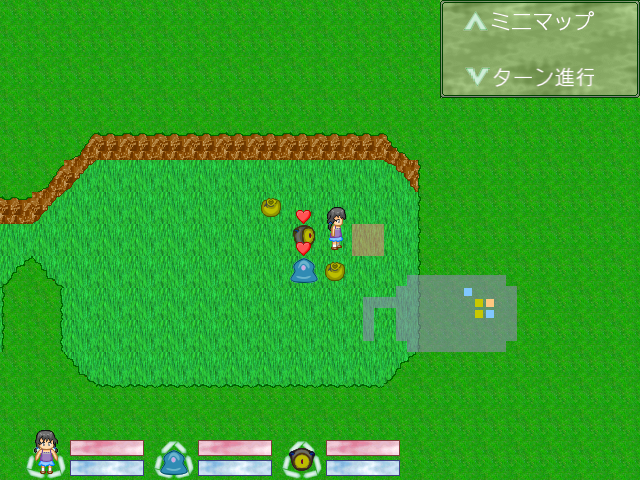 オプションから移動したミニマップ表示の切り替えと、その場でターンを経過する機能があります。