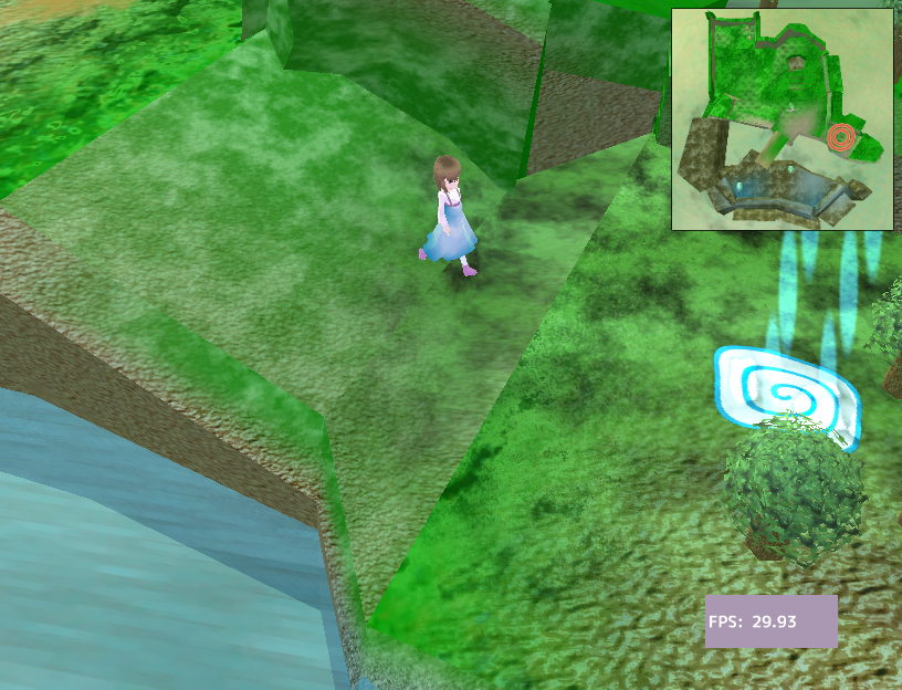 映すオブジェクトを減らして、地形と、プレイヤーの位置だけを描画しています。