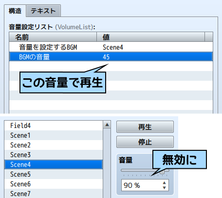 設定していないBGMや、特定のスイッチがオンの時は、そのままの音量で再生されます。
